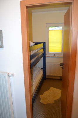 Das eine Schlafzimmer ist mit einem Doppelbett ausgestattet. Das zweite Schlafzimmer verfügt über ein Etagenbett. An die beiden Schlafzimmer grenzt direkt der Flur, über den die Küche und das Badezimmer erreicht wird.