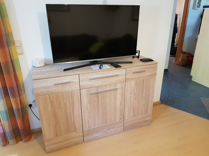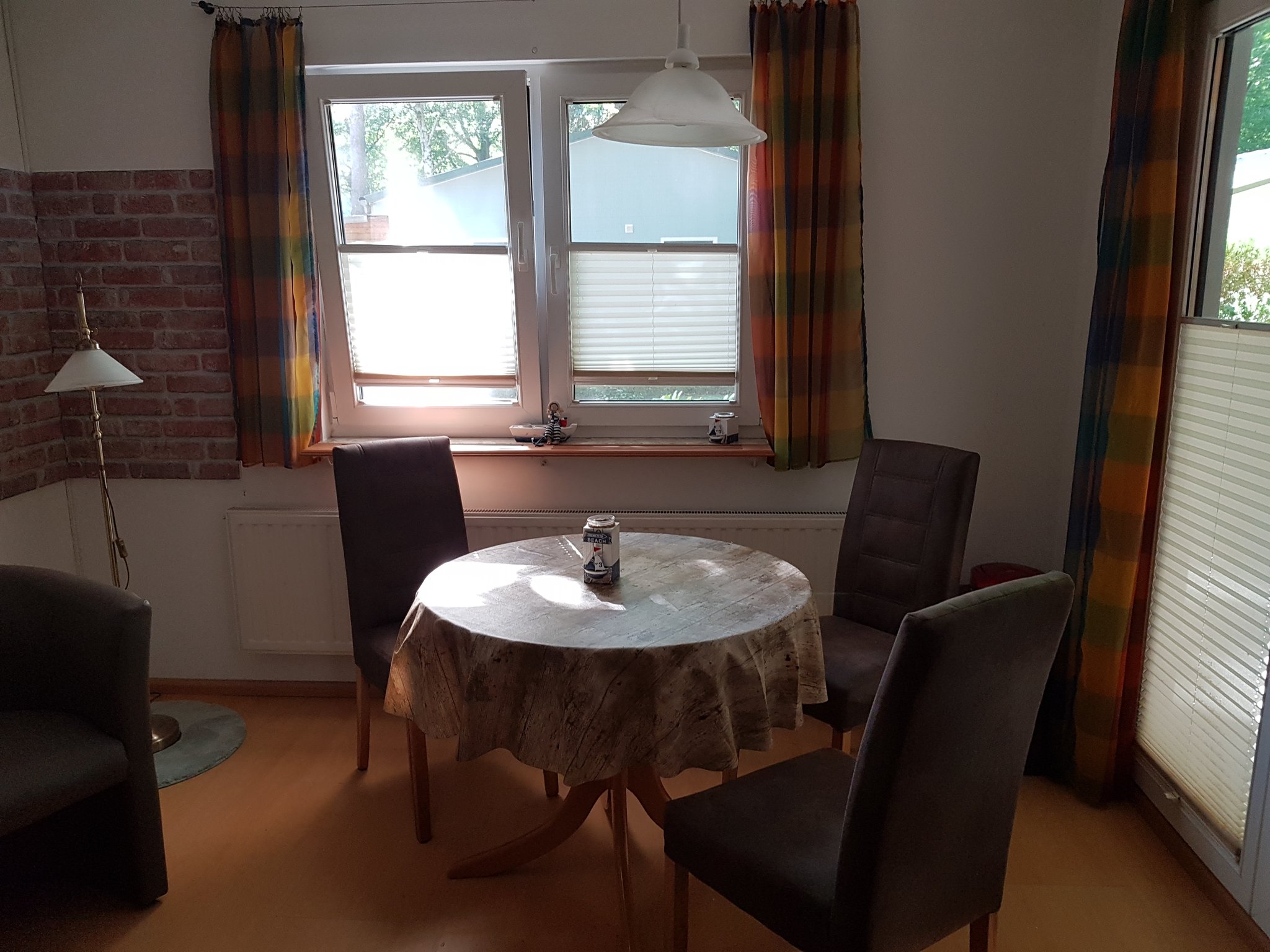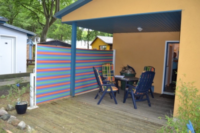 Für 4 Personen ist somit ausreichend Platz vorhanden. Der Wohnbereich umfasst ein Sofa und einen Esstisch. Mit unserem modernen Samsung TV können Sie nicht nur Fernsehen, sondern auch Radio hören. Ein kostenfreier Internetzugang (WLAN / Router im Haus) ist ebenfalls vorhanden. Im Essbereich steht für die kältere Jahreszeit ein Kaminofen zur Verfügung, der Gemütlichkeit ausstrahlt. Neben einer offenen Gartenfläche verfügt der Bungalow über eine überdachte Terrasse, die Dank eines Windschutzes sehr geschützt ist. Grill, Tisch und Stühle stehen für einen gemütlichen Grillabend bereit.